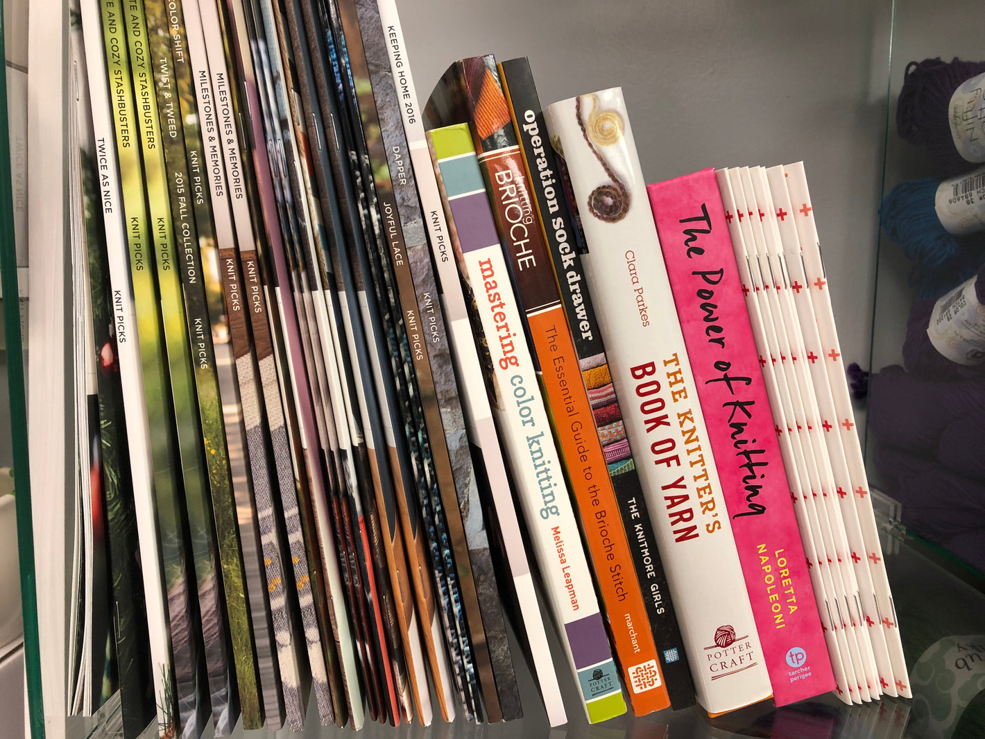 We carry a small selection of fiber craft books with patterns and information. All Rebel Purl patterns are available in store as a printout. If you purchase the printout we can send you the digital pattern free as well. Select Ravelry patterns are also available through the store. Ravelry pattern purchased through us can include a pattern print out when requested. If there is a book or pattern you would like to see in the shop, let us know!