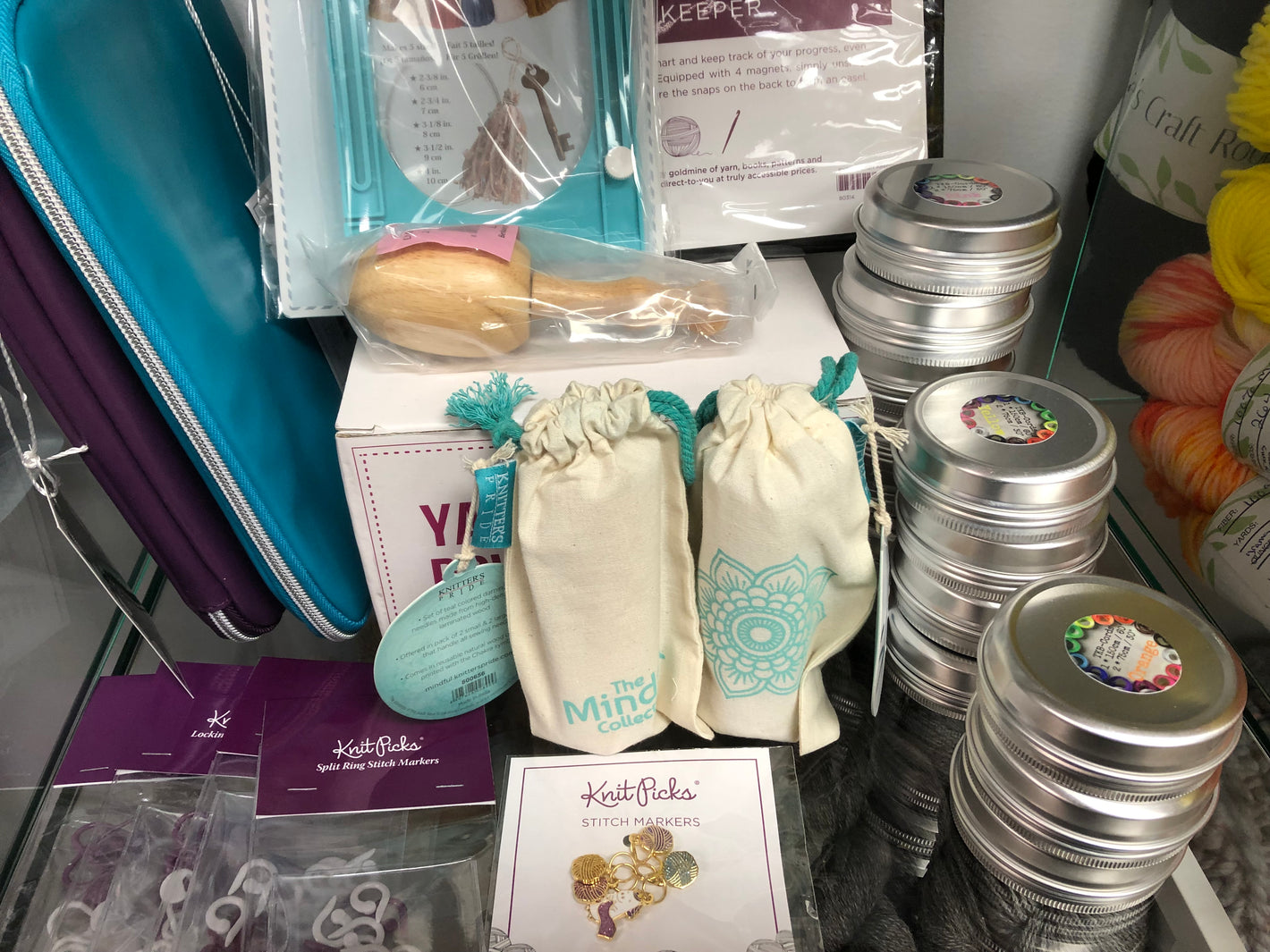 The brick+mortar location includes hand crafted items from several local makers as well as some additional small business and affordable options for fiber crafters.