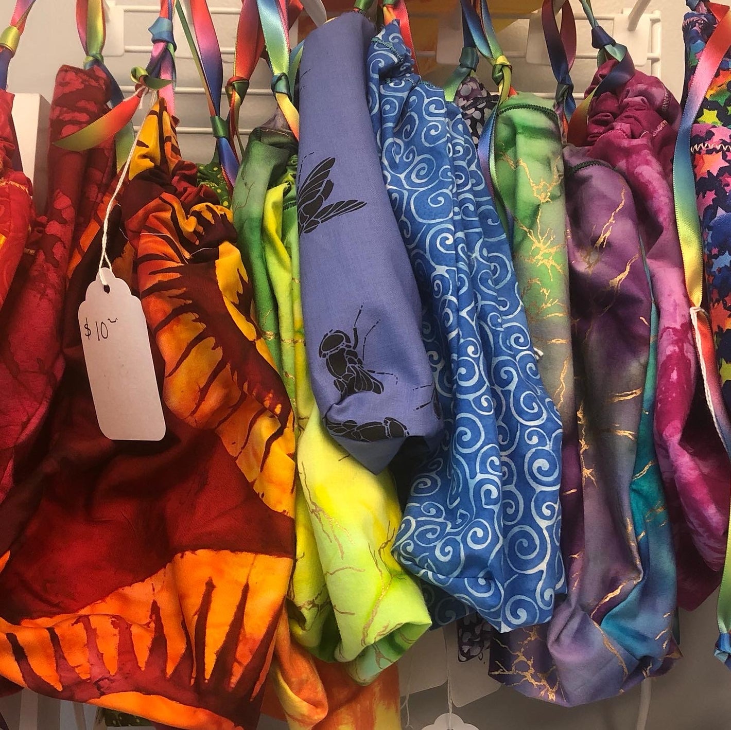 Grab the rainbow with one of these sweet, simple project bags while they last. Bags are handmade in Bloomington, IN by Karen White. Some even have pockets!