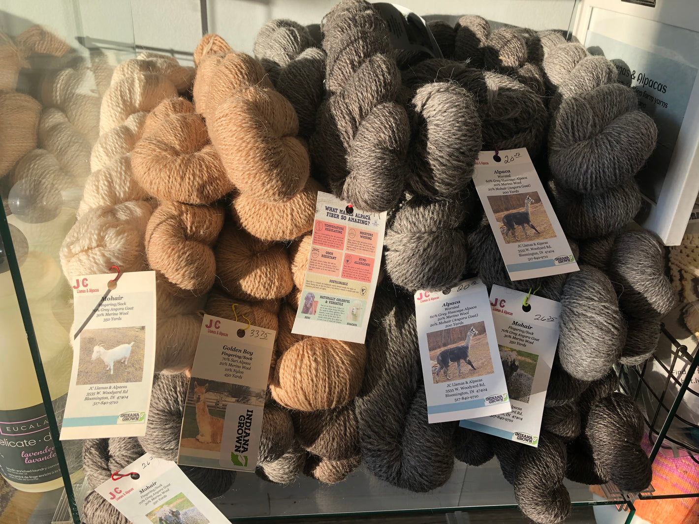 JC Llamas & Alpacas is a local Bloomington, IN farm. Come by the shop for yarn then take a farm tour and meet the animals who supplied the fleece.
