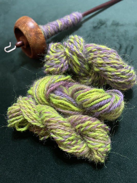 Honeybunch Workshop in Bloomington, Indiana provides lots of fun spinning fibers, locks and braid, some hand dyed some undyed. They also offer bright color handspun yarns.