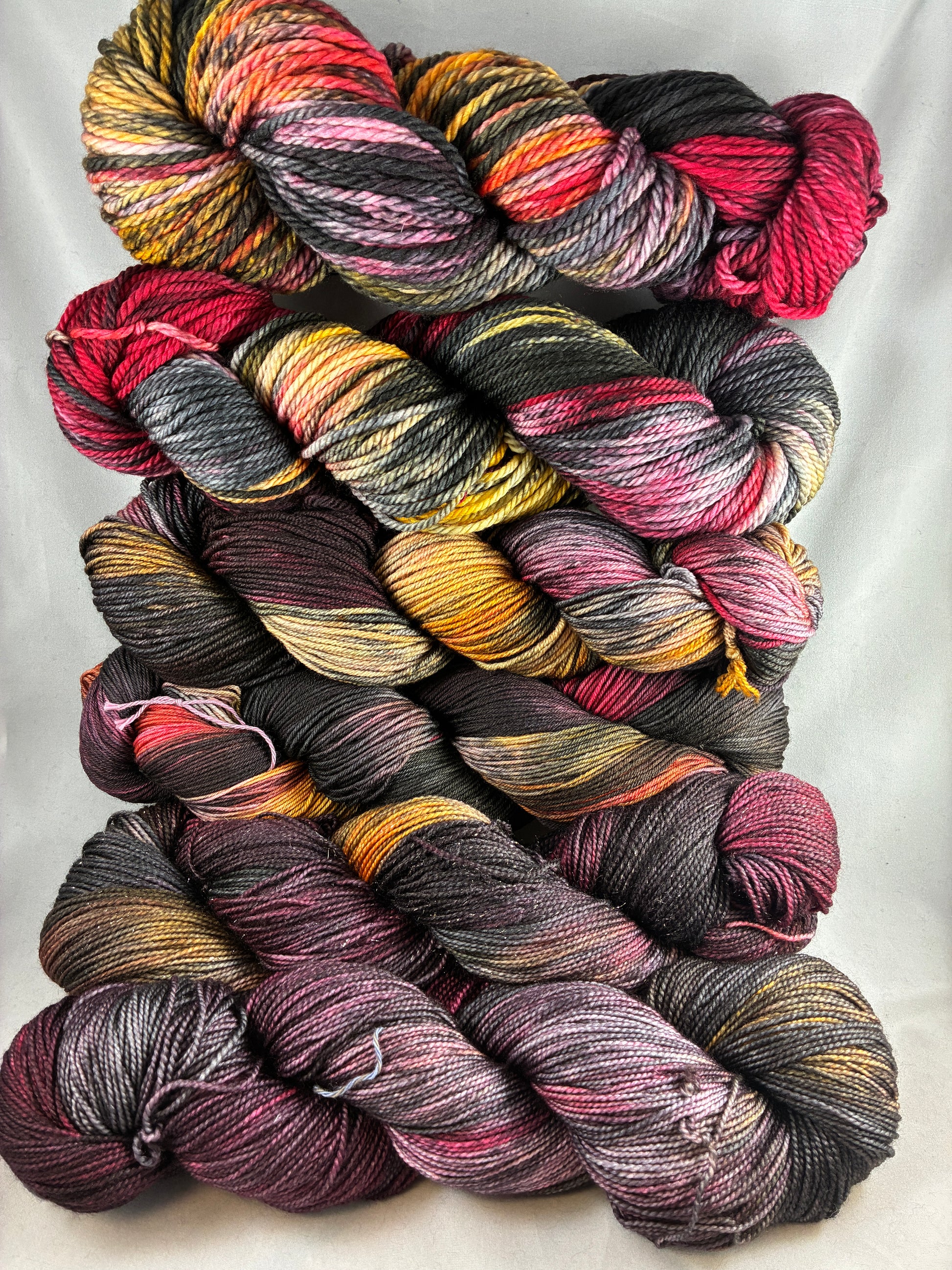 Clothos Yarn Cult is a witchy-inspired luxury yarn indie dyer out of Bloomington, IN. At the moment, they are available exclusively at our shop but we will add a link to their Etsy once they are up and running.