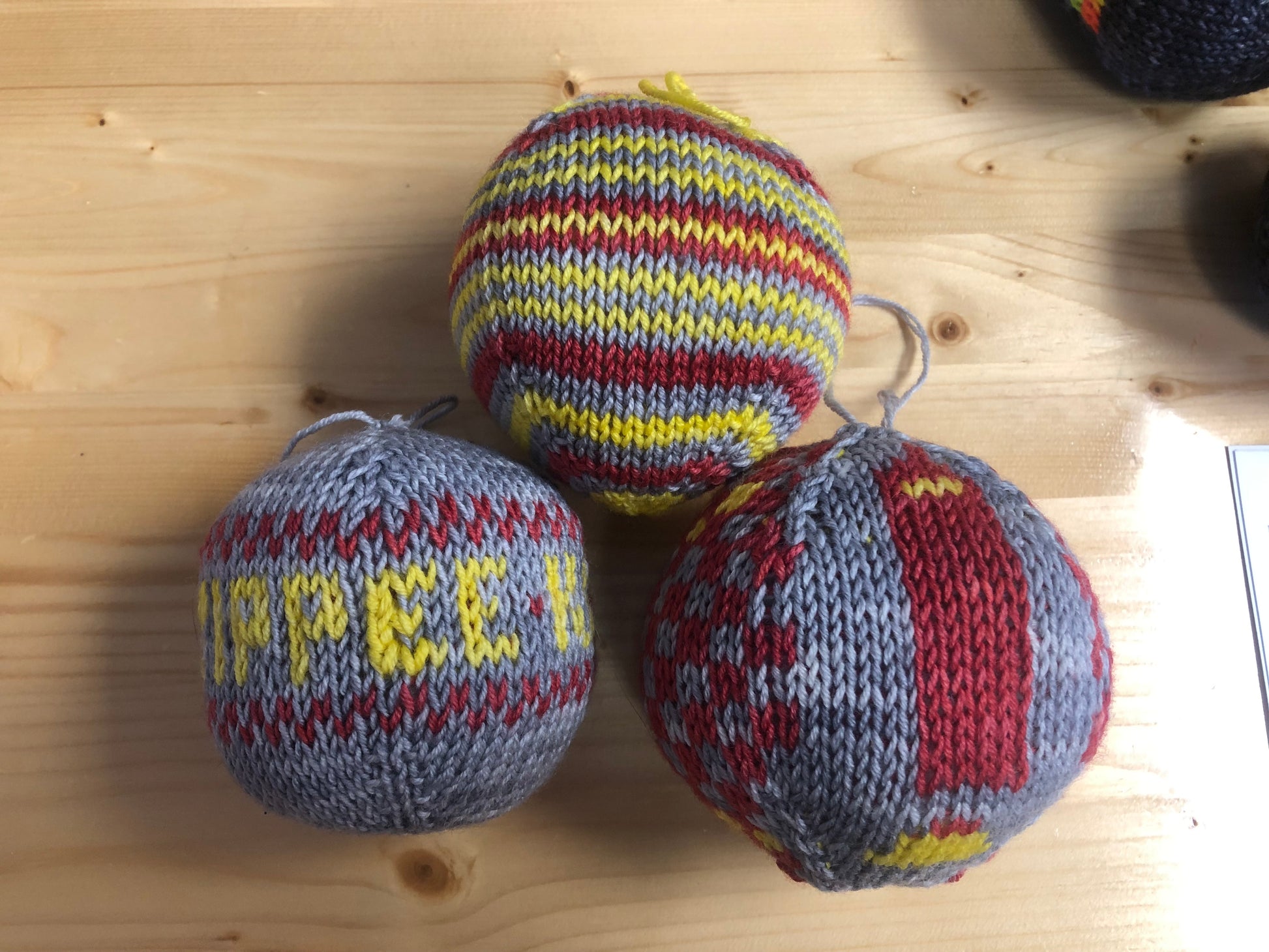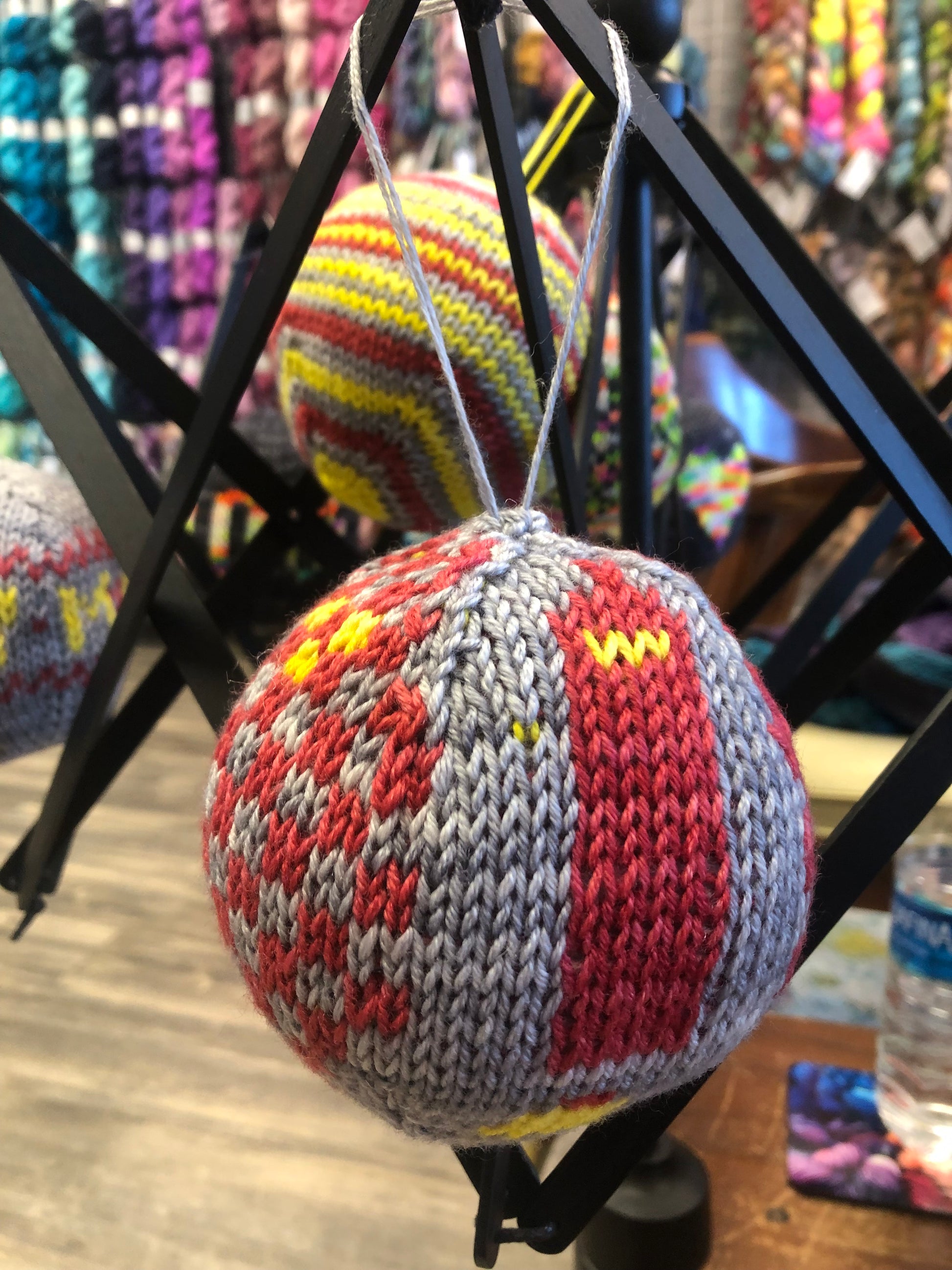 Ornaments are knit in the round, 3 colors stranded colorwork. Directions are written but the ornament designs are charted. There are 3 ornaments per pattern.