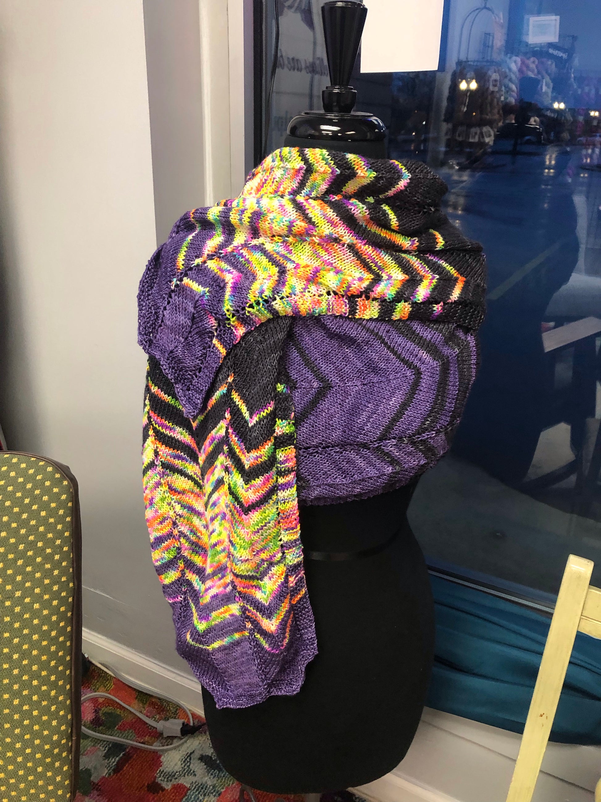 This wrap was knit using 3 skeins of Rebel Purl on 4 Plies of the Apocalypse