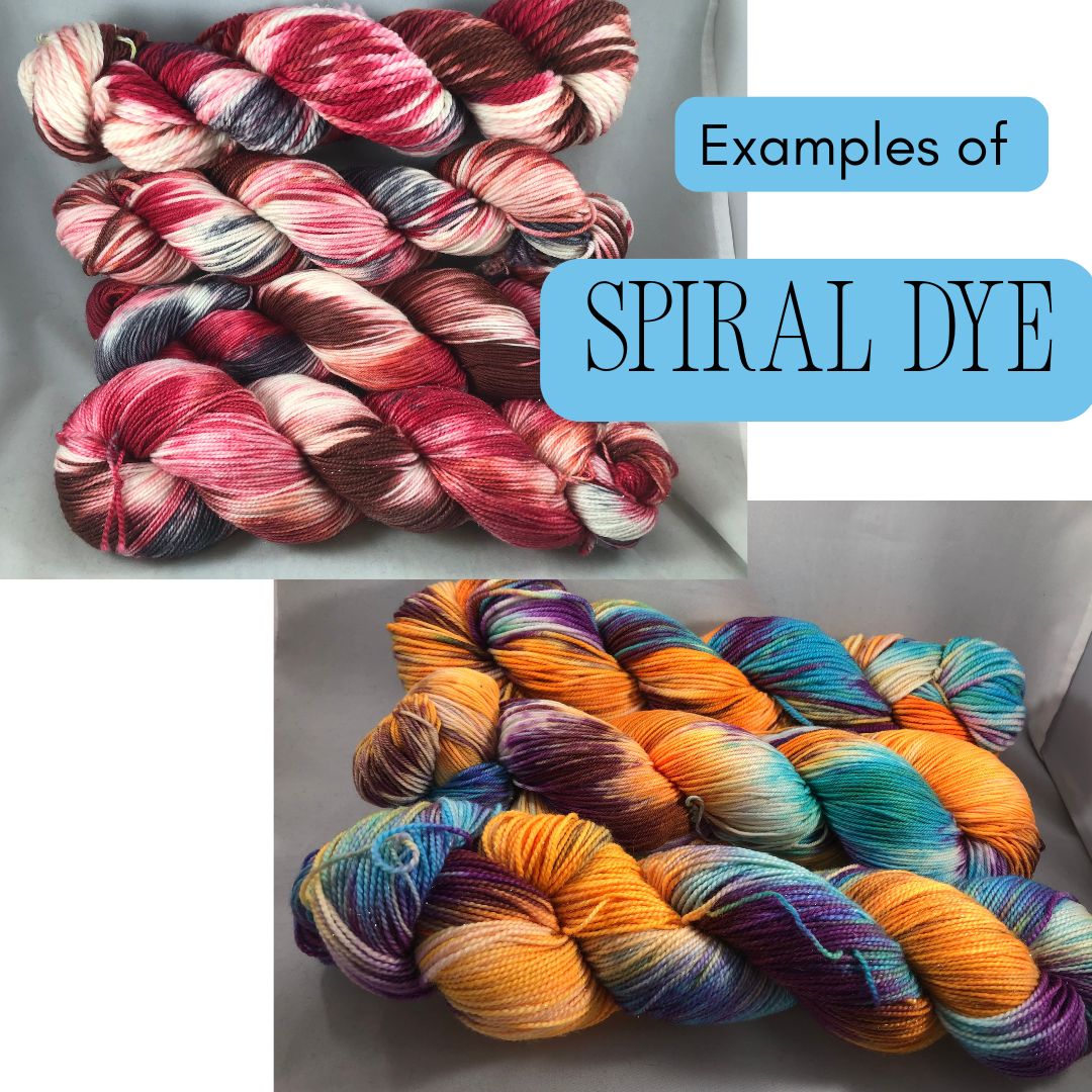 - Spiral dye will keep your colors more separate with some white accents from the spiral tension.