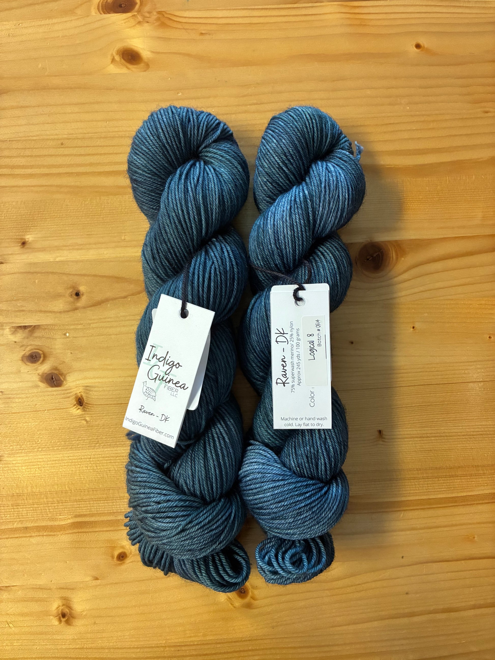 Raven DK: 75/25 superwash merino/nylon, 245 yards, 100 grams