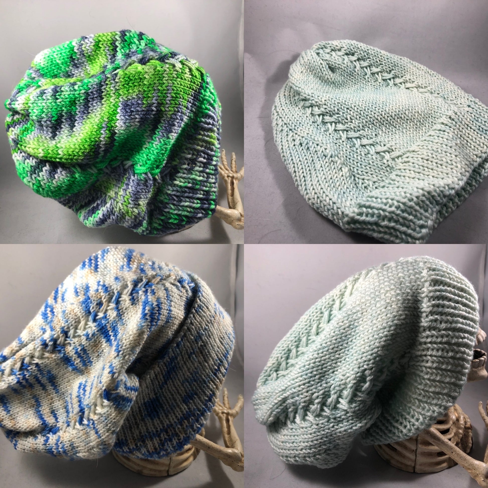 These hats were knit from The Road So Far Pattern with both either 4 Plies of the Apocalypse or Best of the Worsted in various colorways.